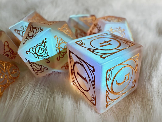Aria of the Morninglord || Frosted Rainbow Glass Dice