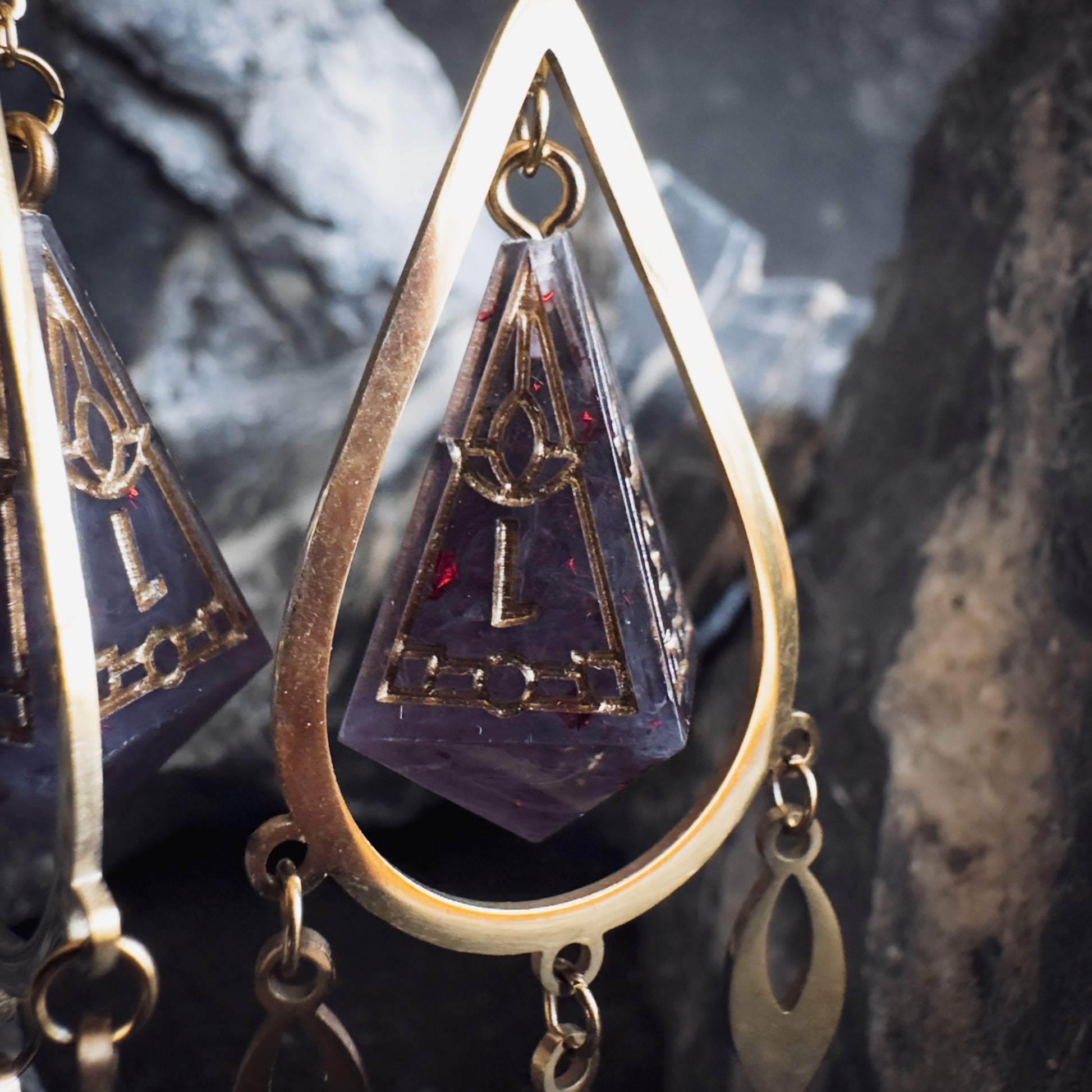 This pair of black D4 dice earrings is perfect for your next game night, adventure, or any time you want to bring your stories with you. Our sharp edge resin dice are poured, sanded, and painted by hand.