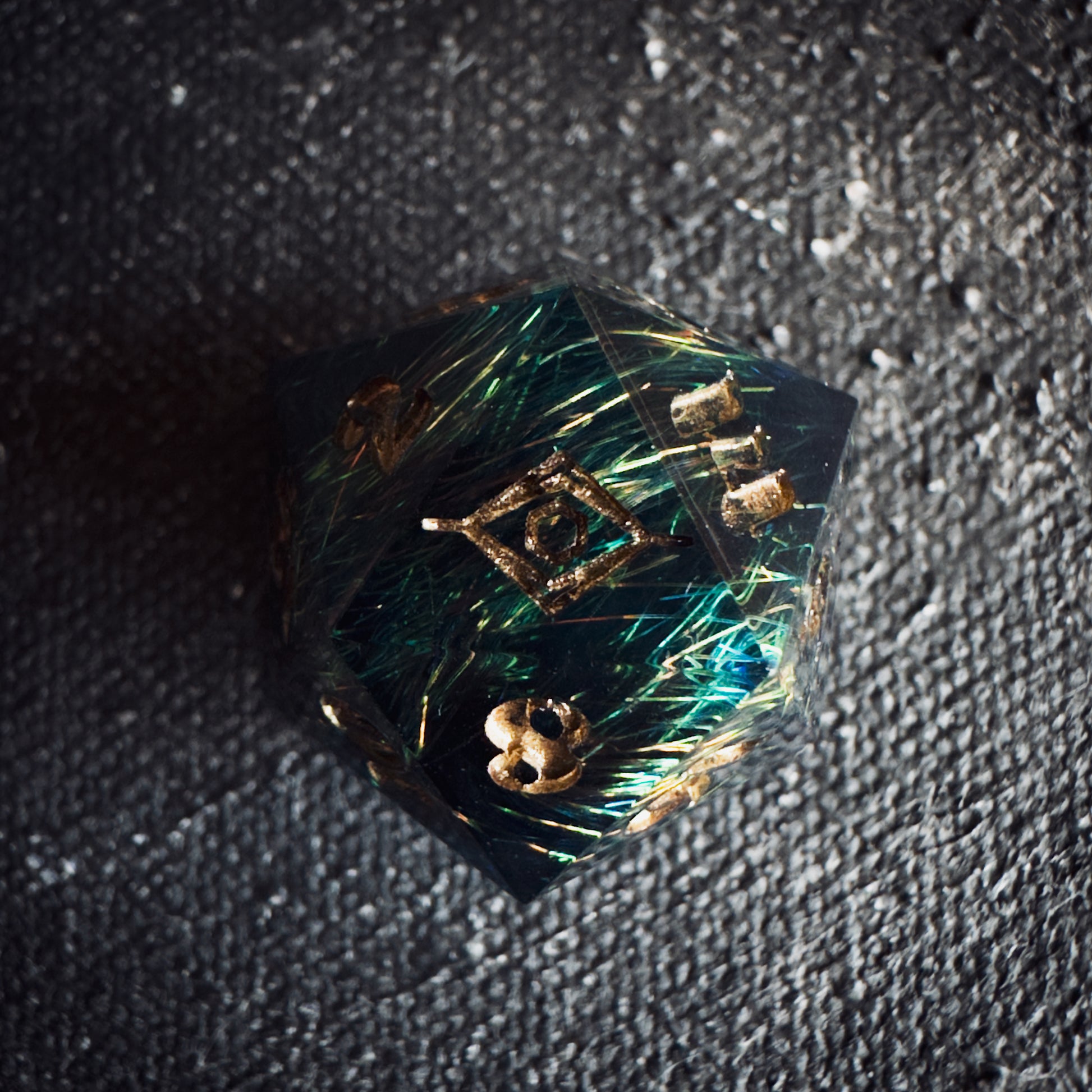 These dice are handmade, and therefore may contain some small imperfections such as microscratches, inclusions approaching the surface, or microbubbles. I do my best to minimize and note any flaws or marks, but they are entirely handmade pieces of functional art, and therefore will have small imperfections. Please bear this in mind when you purchase.