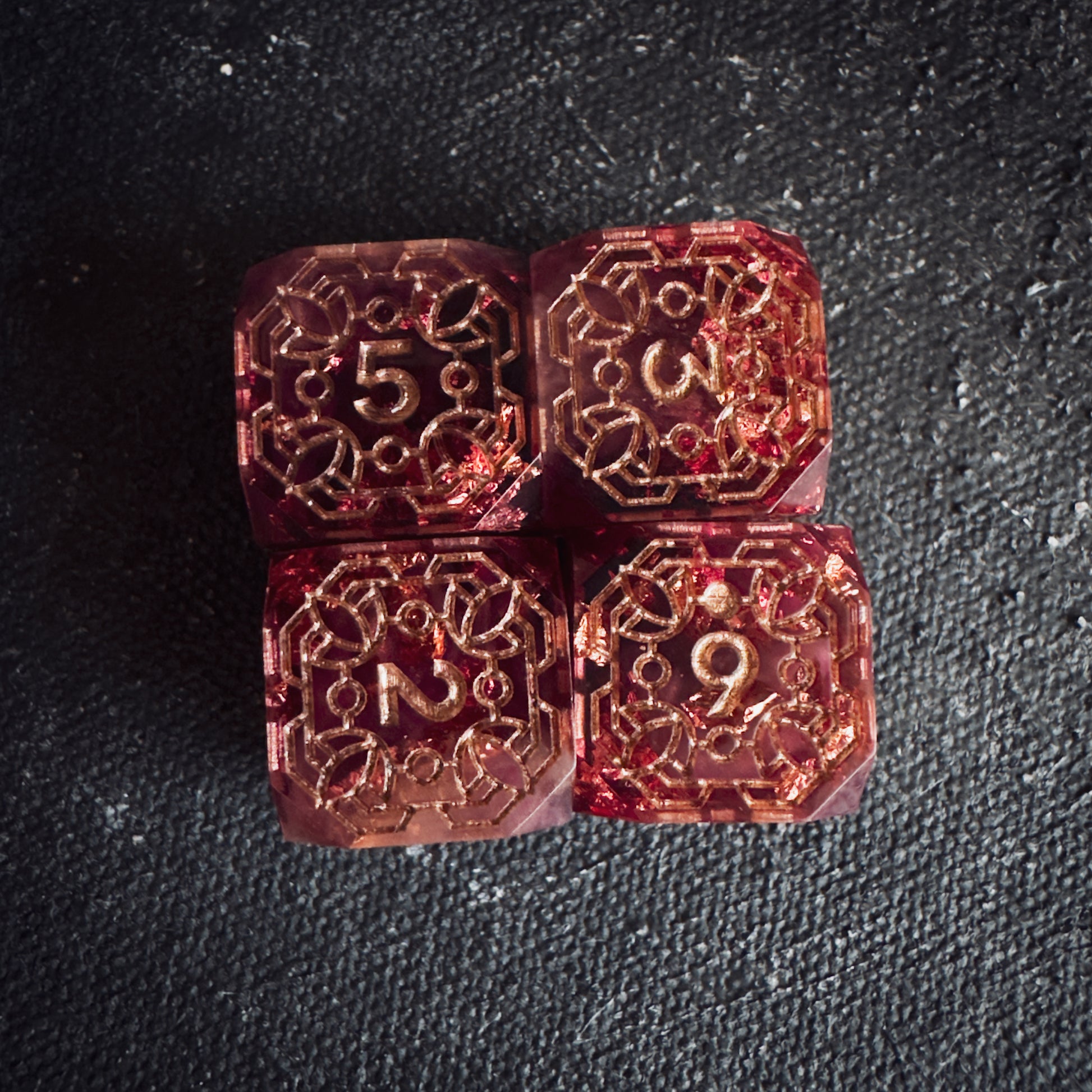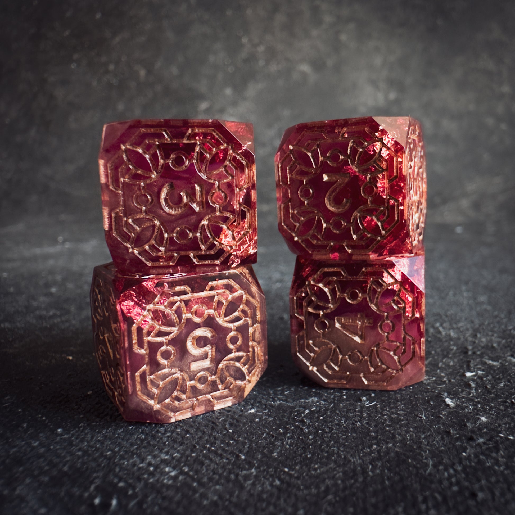 These dice are handmade, and therefore may contain some small imperfections such as microscratches, inclusions approaching the surface, or microbubbles. I do my best to minimize and note any flaws or marks, but they are entirely handmade pieces of functional art, and therefore will have small imperfections. Please bear this in mind when you purchase.