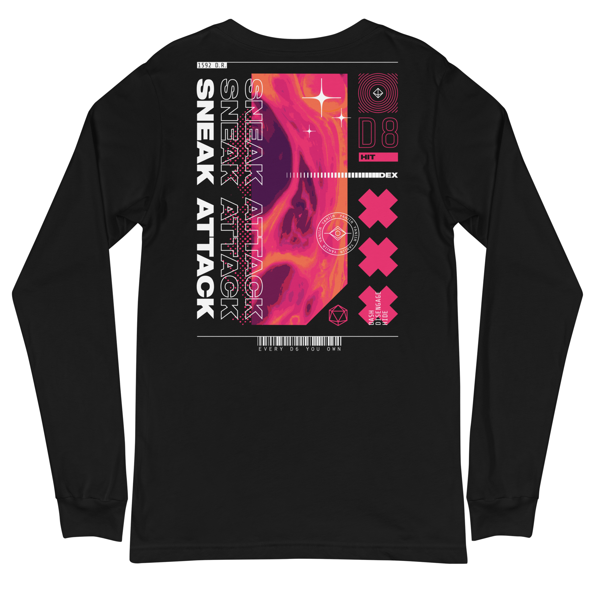 Level up your style stat with these unique and eye-catching D&D-inspired long sleeved tees. Featuring bold and vibrant graphics on the back and an embroidered logo on the front left breast, these shirts are perfect for any fan of the classic role-playing game. Made from high-quality materials, they’re comfortable and durable: perfect for any adventure.