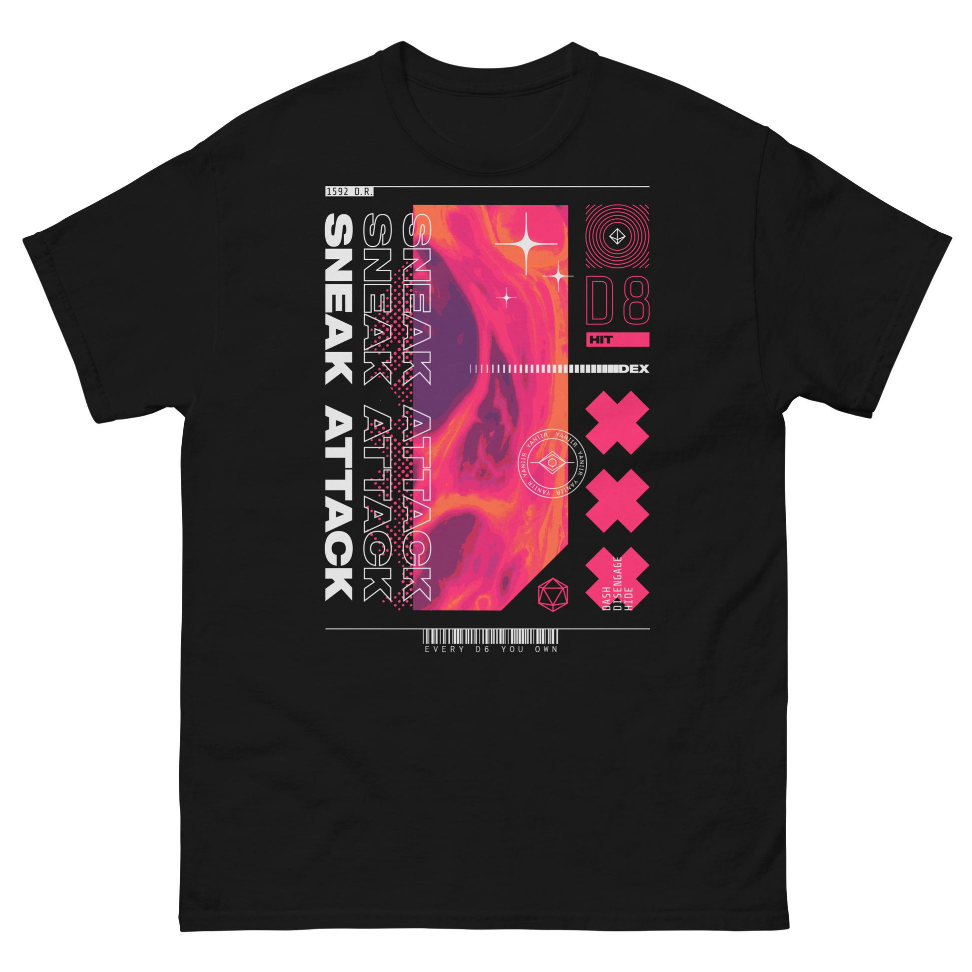 Level up your style stat with these unique and eye-catching D&D-inspired short sleeved tees. Featuring bold and vibrant graphics, these shirts are perfect for any fan of the classic role-playing game. Made from high-quality materials, they’re comfortable and durable: perfect for any adventure.