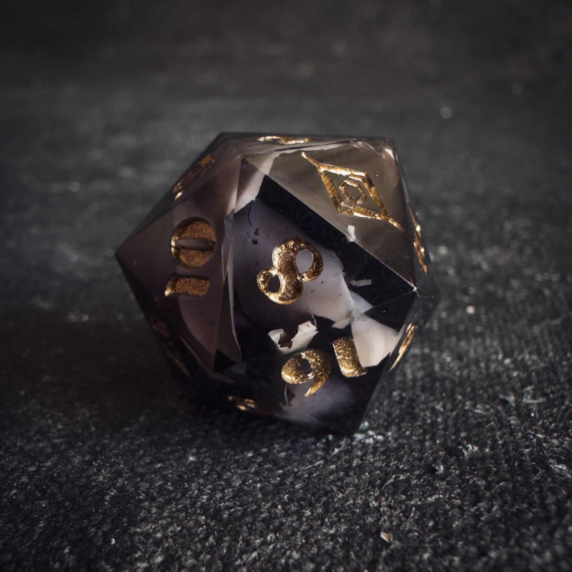 These dice are handmade, and therefore may contain some small imperfections such as microscratches, inclusions approaching the surface, or microbubbles. I do my best to minimize and note any flaws or marks, but they are entirely handmade pieces of functional art, and therefore will have small imperfections. Please bear this in mind when you purchase.