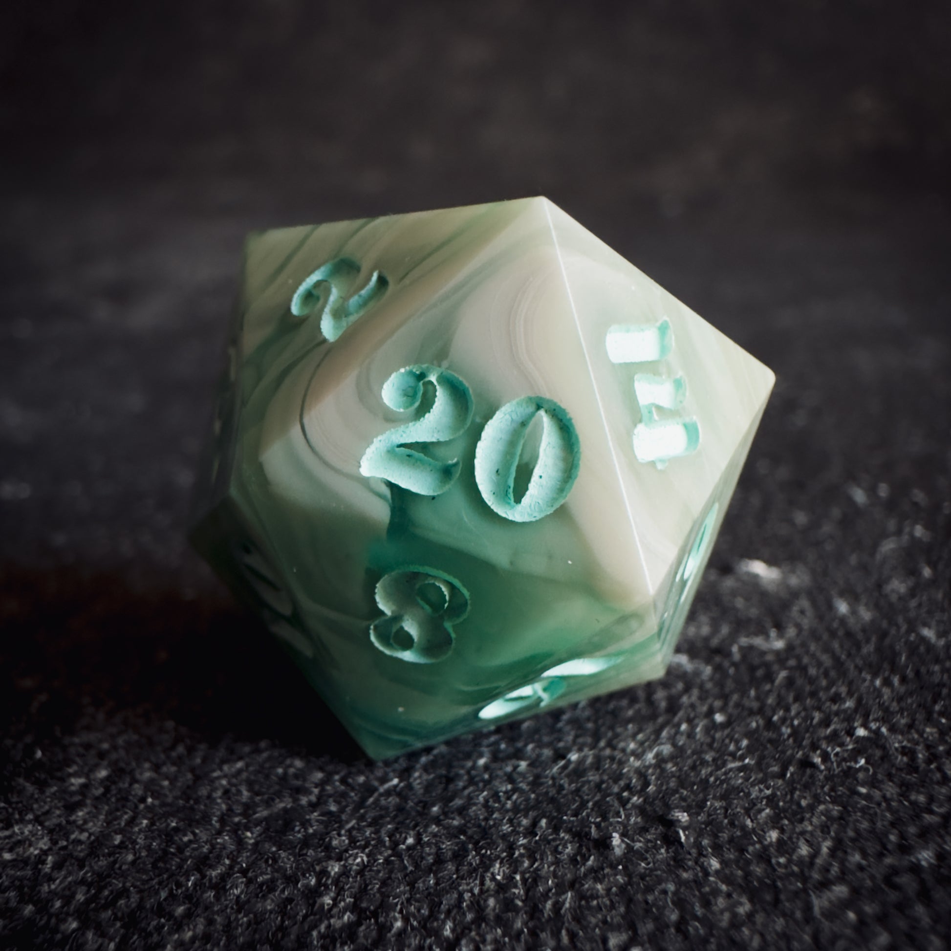 These dice are handmade, and therefore may contain some small imperfections such as microscratches, inclusions approaching the surface, or microbubbles. I do my best to minimize and note any flaws or marks, but they are entirely handmade pieces of functional art, and therefore will have small imperfections. Please bear this in mind when you purchase.